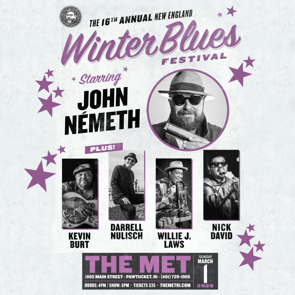 16th Annual New England Winter Blues Festival True Blue Productions knocks it out of the park once again with another outstanding lineup of nationally/internationally, renowned Blues greats for the 16th Annual New England Winter Blues Festival John Nemeth – “One of the best vocalists working today, John Németh has received a multitude of nominations for Blues Music Awards and Blues Blast Awards, including four consecutive BMA nominations for the B.B King Entertainer Of The Year Award. His live shows highlight his dynamic stage presence, impressive vocal range, excellent song writing and masterful harmonica playing.” Kevin Burt – For more than 25 years, Kevin Burt has been electrifying audiences throughout the Midwest dispelling the myth that true blues has no roots in Iowa. His soul-inspired presentation is unique, which consistently gets him compared to a range of artists like Bill Withers and Aaron Neville, with the ability to build an audience rapport Darrell Nulisch – Darrell Nulisch (Dallas, Texas) is an American blues singer and harmonica player. A two-time Grammy Award Nominee, Darrell was a key member of The James Cotton Band, founding member of Anson Funderburgh and the Rockets and member of Ronnie Earl and The Broadcasters. Nulisch’s repertoire incorporates soul combined with R&B and Chicago blues, redesigned to complement his distinctive vocals. Willie J. Law – A Texas guitar “gun slinger”, vocalist and song writer following in the footsteps of T-Bone Walker, Lightning Hopkins, Albert King and many others. This music is the kind of real Texas soul, all mixed up with classic R&B, country, blues/funk that grows from the Texas soil. Willie has performed nationally and internationally, including 2 tours of Russia at the invite of the US Consulate in St Petersburg. Nick “Mr. Nick” David – For the last 25 years dynamo Blues shouter, unorthodox harmonica ace and extraordinary stage presence Nick David has been entertaining audiences in New England and around the world. Nick spent 12 years fronting the widely regarded Mr. Nick & the Dirty Tricks, which included the Billboard charted album “Oh Wow” produced by the legendary Curtis Salgado. Nick has performed and recorded with many notable musicians, including; Luther “Guitar Junior” Johnson, The Holmes Brothers, John Popper, Otis Grand, Jerry Portnoy, Duke Robillard, Ronnie Earl, Curtis Salgado, Big Bill Morganfield, Jason Ricci, James Harman, The Nighthawks, Paul deLay, Rick Estrin & Junior Watson to name a few.